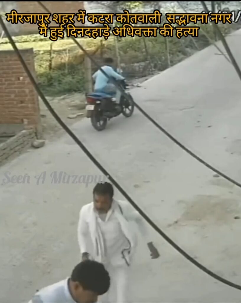 मिर्जापुर।शनिवार सुबह 7:15 बजे जिला मुख्यालय से महज 2 किमी दूर कटरा कोतवाली क्षेत्र के कतवारु का पुरा मोहल्ले में सीनियर वकील राजीव सिंह (45) की गोली मारकर हत्या कर दी गई। वकील रोज की तरह मॉर्निंग वॉक पर निकले थे, तभी दो बाइक सवार हमलावरों ने उन्हें रास्ते में रोककर सीने में तमंचा सटाकर गोली मार दी।पूरी वारदात मोहल्ले में लगे CCTV कैमरे में रिकॉर्ड हो गई। वीडियो में साफ दिख रहा है कि गोली मारने के बाद जैसे ही हमलावर भागने लगे, उनकी बाइक बंद हो गई।
