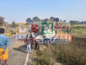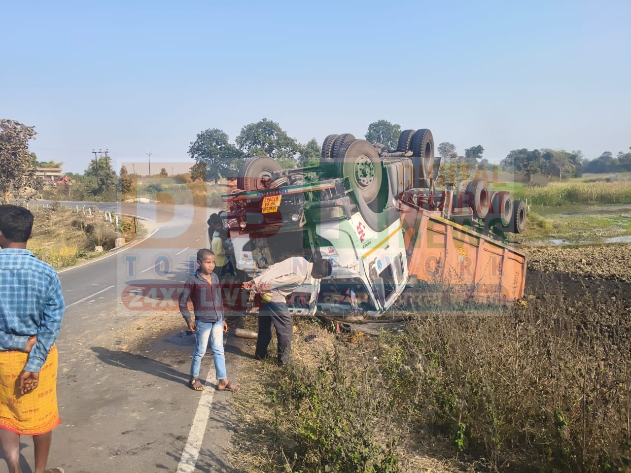हाइवा अनियंत्रित होकर पलटी, चालक खालसी हुए चोटिल |
