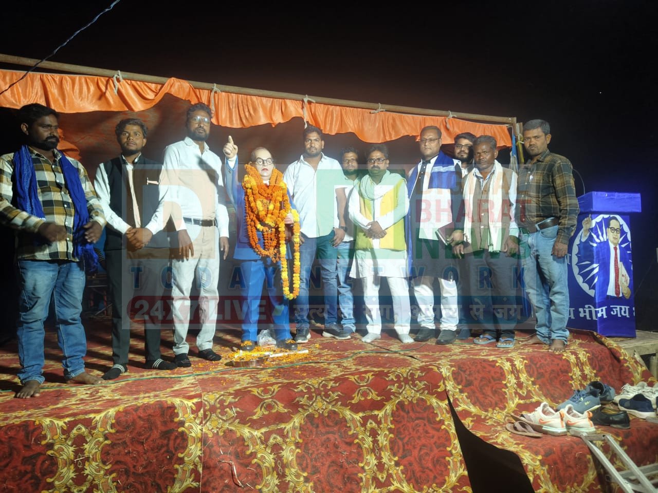 शिक्षा और संविधान के माध्यम से भारत को एक नई दिशा दी. हर वर्ग, हर जाति और हर धर्म के लोगों के अधिकार सुनिश्चित किए. उनके विचार आज भी हमें प्रेरणा देते हैं कि हम एक समावेशी समाज की स्थापना करें, जहां हर व्यक्ति को समान अवसर मिले.वही एडवोकेट कृपाशंकर कुशवाहा ने कहा कि बाबा साहब दूरदर्शी अर्थशास्त्री, विधिवेत्ता, समाज सुधारक, शिक्षाविद् और संविधान निर्माता थे. उन्होंने सामाजिक समानता, आत्म-सम्मान और मानवाधिकारों की जो अलख जगाई, वह आज भी हमारी नीति और दृष्टिकोण का मार्गदर्शन करती है.साथ ही झारखंड से आए मिशन गायक चन्दन,मुकेश द्वारा एक से बढ़कर एक प्रस्तुति कि गयी वही बच्चों द्वारा भी प्रेरणादायक नृत्य की प्रस्तुति कि गयी। कार्यक्रम का संचालन मुन्नालाल गौतम पूर्व प्रधान द्वारा किया गया इस मौके पर रम्भा देवी पुर्व बीडीसी, गौरीशंकर कुशवाहा, जितेंद्र कुमार भारती, राधेश्याम गौतम, श्रवण कुमार भारती, बाबू लाल गौतम,महावीर कुमार नितीश कुमार, अशोक कुमार,रवि कुमार,अवध कुमार, महेंद्र कुमार, जयंत कुमार,अनोज कुमार, सुभाष,अमरेश भारती, राजेश रावत ,व प्रशासन के लोग मौजूद थे।