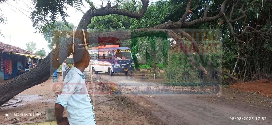 दुद्धी, सोनभद्र। अमवार-दुद्धी मुख्य मार्ग पर सोमवार देर रात एक विशालकाय बबूल का पेड़ गिर जाने से आवागमन पूरी तरह बाधित हो गया है। मंगलवार की शाम तक भी पेड़ को सड़क से नहीं हटाया गया था, जिससे राहगीरों और स्थानीय लोगों को भारी परेशानियों का सामना करना पड़ रहा है।