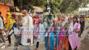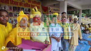 विश्व आदिवासी दिवस पर दिखी आदिवासी परंपरा की झलक,डीजे की धुन पर जुलूस मे जमकर थिरके आदिवासी समाज के लोग।