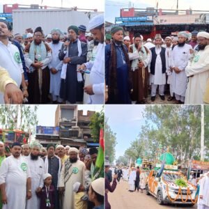 जुलूस में शामिल लोग नाते पाक व कसीदे पढ़ते हुए “पत्ती-पत्ती फूल-फूल या रसूल” के नारों से फिजा को गुलजार करते रहे। जुलूस नगर के विभिन्न मार्गों से होता हुआ बस स्टैंड और थाना मार्ग से गुजरकर कोन जामा मस्जिद पर पहुंचा, जहां इसका समापन सभा के रूप में हुआ। इस मौके पर देश व क्षेत्र की अमन-चैन और तरक्की के लिए दुआ की गई।