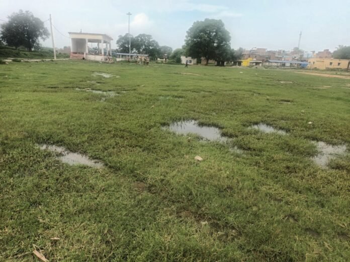 विंढमगंज (सोनभद्र)।स्थानीय विढमगंज खेल मैदान इन दिनों बदहाली का शिकार है। मैदान में जगह-जगह गड्ढे बने हुए हैं जिनमें बरसाती पानी जमा है। हालत यह है कि खेल गतिविधियाँ तो प्रभावित हो ही रही हैं, साथ ही आगामी दशहरे के मेले के आयोजन पर भी संकट के बादल मंडराने लगे हैं।