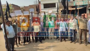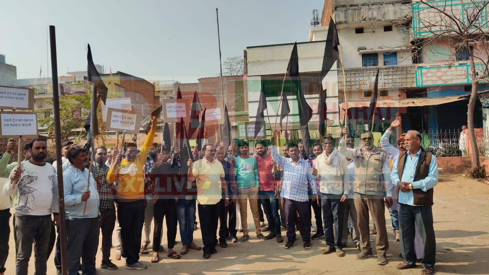 विंढमगंज में ट्रेनों के ठहराव को लेकर जोरदार प्रदर्शन, काला झंडा दिखाकर जताया विरोध