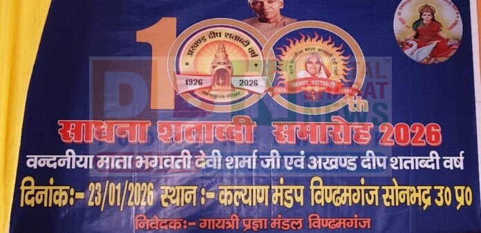 विंढमगंज, सोनभद्र बसंत पंचमी के पावन अवसर पर दिनांक 23 जनवरी 2026 को कल्याण मंडप, विंढमगंज में साधना शताब्दी समारोह का भव्य एवं गरिमामय आयोजन किया गया। यह कार्यक्रम गायत्री प्रज्ञा मंडल, विंढमगंज के तत्वावधान में श्रद्धा, संस्कार और आध्यात्मिक चेतना के साथ सफलतापूर्वक संपन्न हुआ।कार्यक्रम के दौरान वैदिक परंपरा के अनुसार विभिन्न संस्कार संपन्न कराए गए, जिनमें 1 पुंसवन संस्कार, 2 अन्नप्राशन संस्कार,1 मुंडन संस्कार तथा 5 विद्यारंभ संस्कार प्रमुख रूप से शामिल रहे। इन संस्कारों के माध्यम से भारतीय संस्कृति, पारिवारिक मूल्यों एवं नैतिक जीवन की महत्ता को जन-जन तक पहुंचाने का संदेश दिया गया।समारोह में उपस्थित श्रद्धालुओं ने पांच कुंडीय यज्ञ में सामूहिक रूप से आहुति प्रदान की। यज्ञ के दौरान वातावरण वैदिक मंत्रोच्चार से गूंज उठा, जिससे संपूर्ण परिसर आध्यात्मिक ऊर्जा से ओत-प्रोत हो गया। यज्ञ का उद्देश्य विश्व शांति, सामाजिक सद्भाव और मानव कल्याण की कामना रहा।यज्ञ एवं संस्कार कार्यक्रम के उपरांत सभी श्रद्धालुओं ने महाप्रसाद ग्रहण किया। इस आयोजन में क्षेत्र के सैकड़ों लोगों की सहभागिता रही, जिसमें मातृशक्ति, युवा वर्ग एवं वरिष्ठ नागरिकों ने उत्साहपूर्वक भाग लिया।आयोजकों ने बताया कि ऐसे संस्कार और यज्ञ कार्यक्रम समाज में सकारात्मक सोच, नैतिकता और आध्यात्मिक जागरण को मजबूत करते हैं। अंत में गायत्री प्रज्ञा मंडल विंढमगंज द्वारा सभी आगंतुकों के प्रति आभार व्यक्त किया गया।