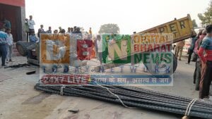 सरिया से लदी ट्रैक्टर अनियंत्रित होकर पलटी
